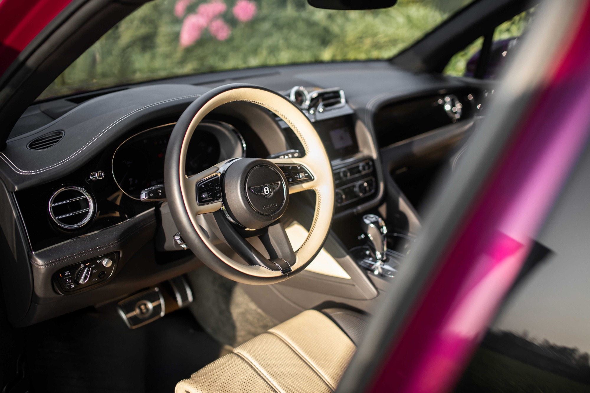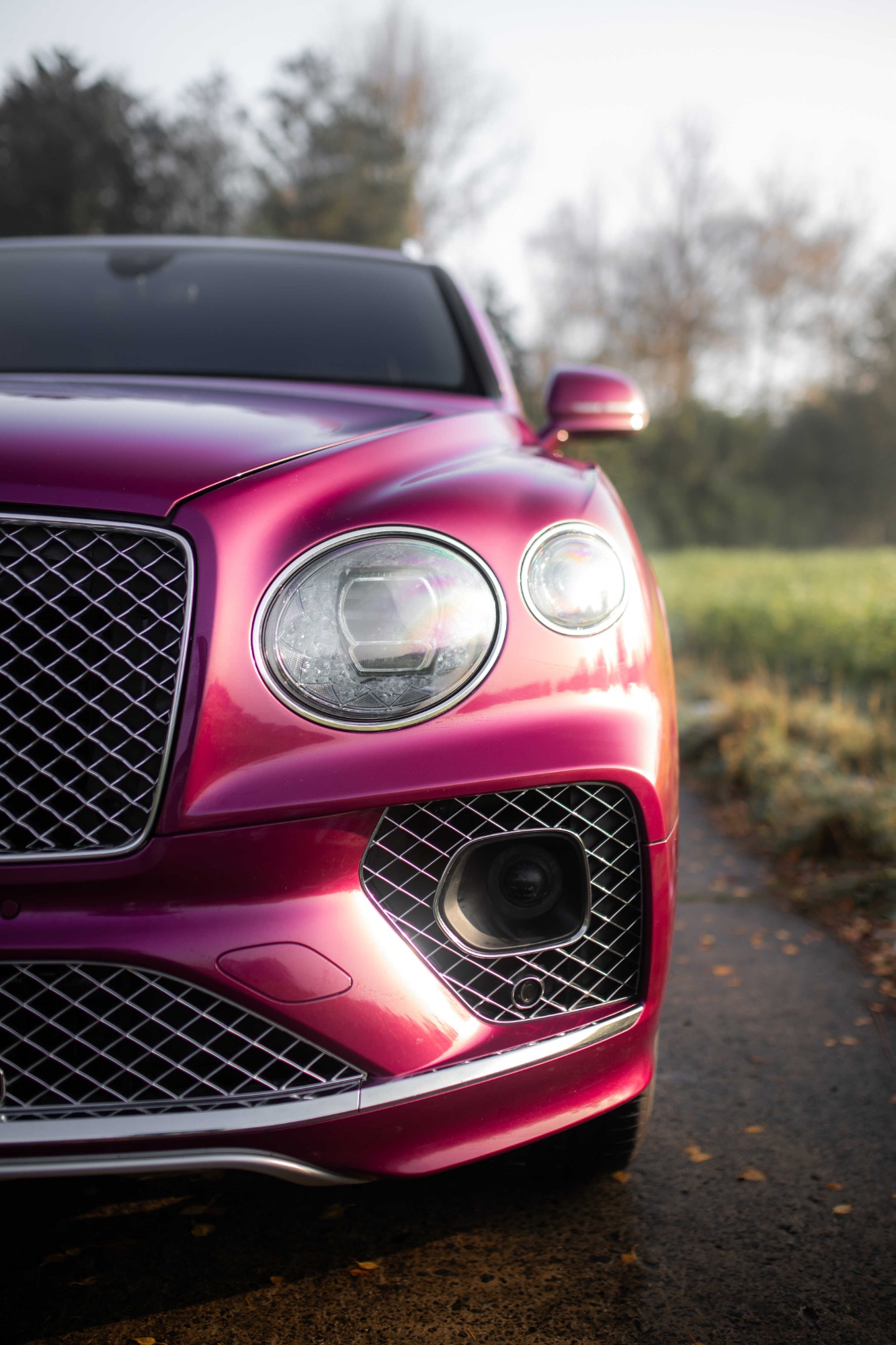 Soms krijg je auto's mee waarvan je denkt, WAT IS DIT!! Dat was ook het geval met deze Bentley Bentayga Mulliner in het prachtige 'Magenta roze'. Door de mooie winterzon kwam de kleur echt naar voren.